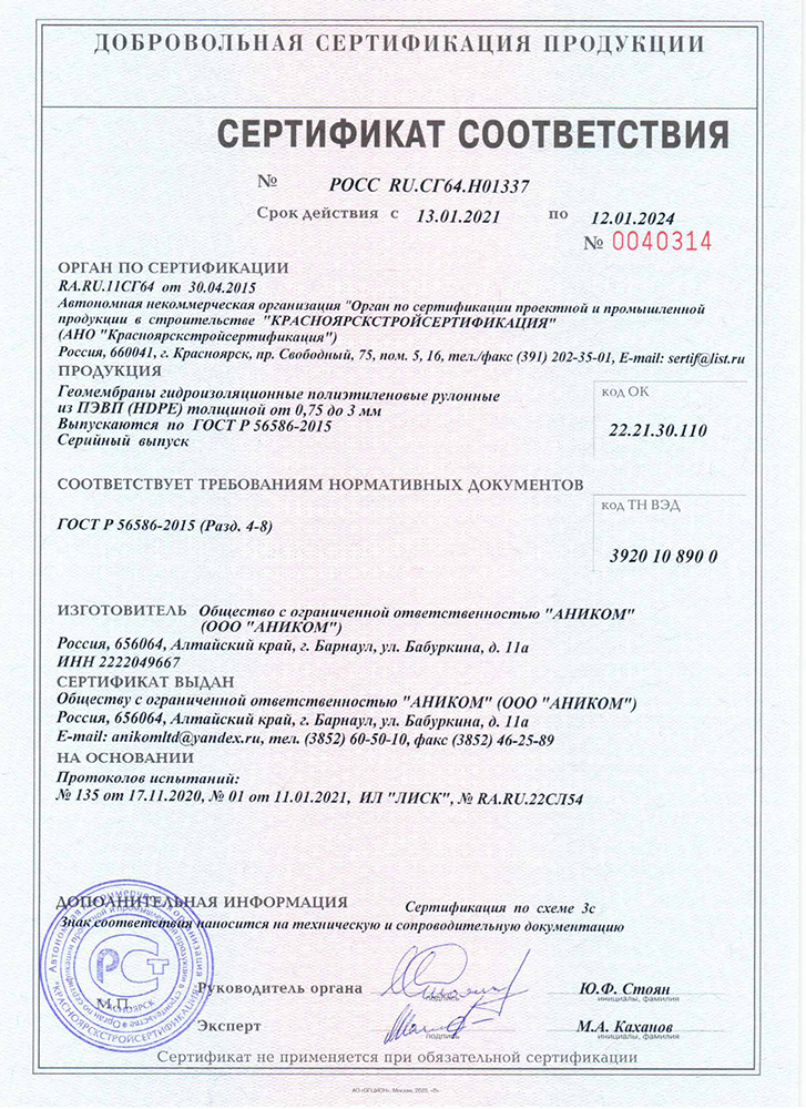 Компания «АНИКОМ» занимается производством и продажей геомембраны.